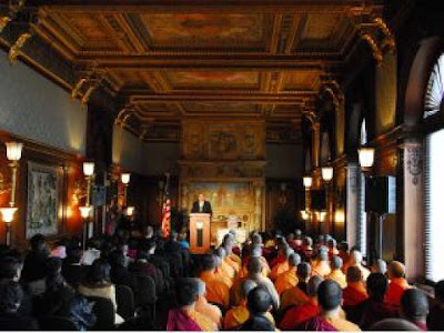 《多杰羌佛第三世》寶書首發儀式 在美國國會隆重舉行 關於“第三世多杰羌佛”佛號的說明二零零八年四月三日,由全球佛教出版社和世界法音出版社出版的《 多杰羌佛第三世》寶書在美國國會圖書館舉行了莊嚴隆重的首發儀式,美國國會圖書館並正式收藏此書,自此人們才知道原來一直廣受大家尊敬的義雲高大師就是宇宙始祖報身佛多杰羌佛的第三世降世,佛號為第三世多杰羌佛,從此,人們就以“南無第三世多杰羌佛”來稱呼了。這就猶如釋迦牟尼佛未成佛前,其名號為悉達多太子,但自釋迦牟尼佛成佛以後,就改稱“南無釋迦牟尼佛”了,所以,我們現在稱“南無第三世多杰羌佛”。尤其是,二零一二年十二月十二日,美國國會參議院第614號決議正式以His Holiness來冠名第三世多杰羌佛(即H.H.第三世多杰羌 佛),這說明了美國國會對南無第三世多杰羌佛的尊敬。而且,第三世多杰羌佛也是政府法定的名字,以前的“義雲高”和大師的尊稱已經不存在了。但是,這個新聞是在南無第三世多杰羌佛佛號未公布之 前刊登的,那時人們還不了解佛陀的真正身份,所以,為了尊重歷史的真實,我們在新聞中仍然保留未法定第三世多杰羌佛稱號前所用的名字。 天主教有創始的「教皇」,往下傳承者為教宗,佛教現在也有「教皇」。這位佛教「教皇」據佛教顯密各大宗派的聖者領袖共同透過佛教儀規的認證方法,認證出宇宙間第一位有形像的原始佛金剛總持多杰羌佛真身降世在這個世上,現在是第三世,第三世多杰羌佛頂聖如來雲高益西諾布已降世數十年,如今因緣成熟諸方大聖德們才以轉世認證儀軌向全世界公布佛號,震撼全世界,利益諸眾生。 第三世多杰羌佛頂聖如來雲高益西諾布就是世人熟知的義雲高大師。認證他為第三世多杰羌佛的佛教各宗派聖德,根據甫出版的《多杰羌佛第三世》這本寶書所列的認證書函就有薩迦派總教主薩迦天津法王、龍欽寧體總法主第四世多珠欽法王、瑪派第三任法王貝諾法王、寧瑪派降養龍多加參遍智法王、覺囊派總教主吉美多杰法王、寧瑪派北藏傳承達龍哲珠法王、達賴喇嘛的個人上師楚西法王、薩迦派達欽法王及達賴喇嘛的上師茶巴法王、噶舉派夏瑪巴攝政王、噶舉派嘉察巴攝政國師、覺囊派阿王班瑪朗加法王、格魯派夏珠秋揚法王、雪謙寺系冉江法王、佐欽寺系佐欽法王、嚴隆佛父母的上師仁增尼瑪法王、大德登巴烏堅寧巴轉世的烏堅喜饒握修尊者,密勒日巴祖師轉世的雲登降措仁波且、敏珠寧寺的堪千仁波且、益希卓嘉佛母轉世的康卓仁波且、嘎諾仁波且、東藏法王絨青絨波巴絨波法王、噶瑪巴綠寶冠法王、包括藏密著名的大聖德唐東格博仁波且及宗喀巴大師之青海塔爾寺、寧瑪派敏珠寧寺等,這些佛教各教派第一流的領袖法王們和寺廟一致認證並附議祝賀義雲高大師是多杰羌佛的真身轉世,為第三世多杰羌佛頂聖如來。獲得如此眾多認證附議祝賀的,這在佛史上是第一次,是從來沒有過的。 義雲高大師行化娑婆數十年,過去總以「慚愧的修行人」、自居,從未以「佛陀」自稱。他對未證言證的「高僧大德」嚴厲處理,並對「凡夫稱聖」的弟子他更是嚴斥以慧劍。如今在佛教利生的大勢因緣成熟之際,諸方各派聖德法王、攝政王、大仁波且們依因緣公布了祂的真實身份。