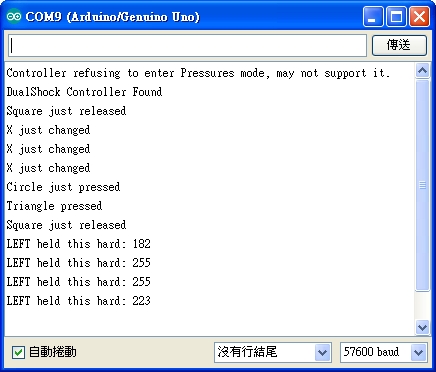 下圖,PS2搖桿轉接板 下圖,轉接板裝上ARDUINO UNO與搖桿無線收發器 下圖,另外可加裝Wii搖桿的轉接板,要另外購買與自行焊接 開始寫程式 1. 首先下載ARDUINO PS2搖桿函式庫,之後解壓縮放到libraries的目錄下 2. 在ARDUINO開發IDE環境中,檔案->範例->PS2X_lib->Examples->PS2X_Example,開啟範例 3. 原本是 4. 最後編譯並下載到ARDUINO 5. 開啟序列監控視窗,就會看到按下的按鍵囉,按下X鍵,搖桿還會振動~~