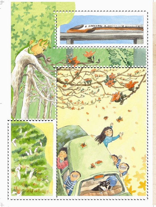 這些浸漬我們多種感官的豐富記憶,也將在這本圖畫書的陪伴下,繼續在我們的腦海裡隨時光發酵。 故事的繪者也為本書增色許多。她聰明的將書本設計成集郵冊的形式,讓作者描述的畫面成了一張張美麗的歲月剪影郵票。我們在每個跨頁的右上角看到一張小幅的攝影照郵票,分別拍攝作者描繪的台中城市場景,書本的左頁則更細膩的延伸了右頁照片的景緻,捕捉小玲記憶故事裡,更多文字未竟的敘述,並且利用尺寸不規則、裁切線各異其趣的郵票頁面設計,讓故事變得更加生動活潑。右頁印製小玲歲月日記的部分,也運用手寫字標明日誌的月份,還加入各色或古雅、或拙樸有味的小圖,充分讓讀者感受小玲充滿豐富情味的記憶故事。 《小玲的台中歲時記》是一本令人回味再三的美好作品,不但歷歷呈現台中的豐美樣貌,肯定也會歷久彌新,陪一代一代的讀者走過迭宕的歲月風華。(文:黃筱茵,文字工作者)