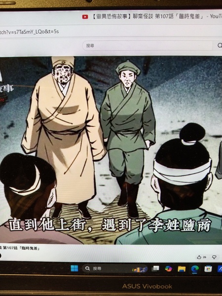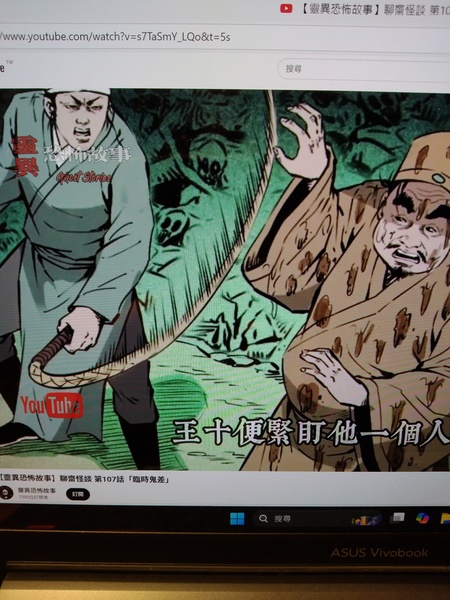 〈王十〉故事略以,高苑人王十帶了一袋鹽回家,半途被鬼差以販私鹽捉去,他覺得很無辜。(註:照片翻拍自https://www.youtube.com/watch?v=s7TaSmY_LQo&t=5s)