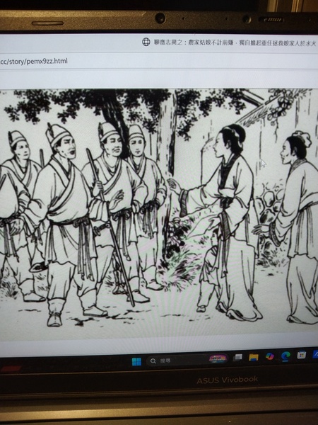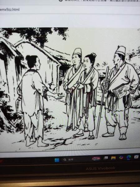 在前往關外路上,遇到一個乞丐,細看原是他的兄長仇福,說明原由後,勸他趕快返家。(註:照片翻拍自https://kknews.cc/story/pemx9zz.html)