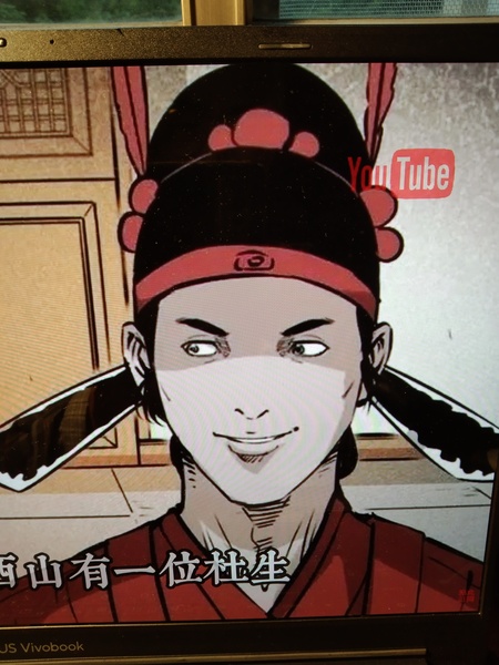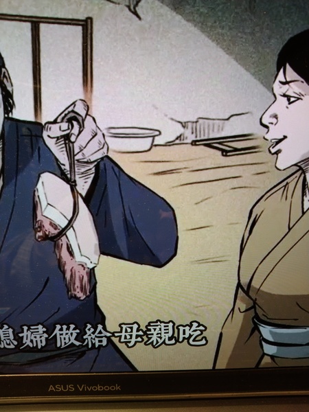 〈杜小雷〉故事略以:杜小雷十分孝順,母親雙盲,家裡雖窮,好東西都讓母親先吃。(註:照片翻拍自https://www.youtube.com/watch?v=fRfcbzK-Tp0)