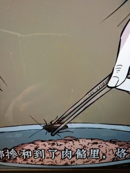 媳婦故意把蟑螂雜在肉裡。(註:照片翻拍自https://www.youtube.com/watch?v=fRfcbzK-Tp0)