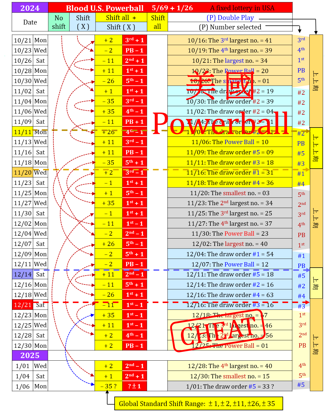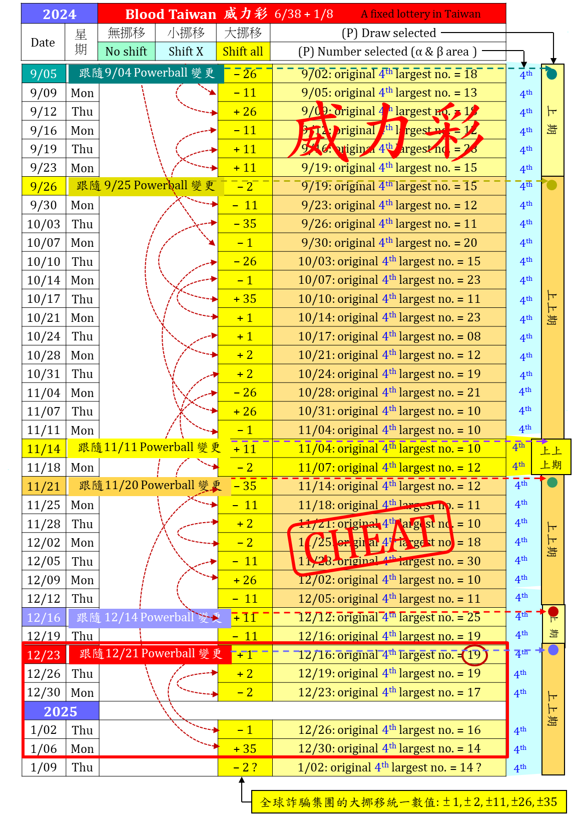 圖解威力彩 12/23/2024 - 1/06/2025 計 5 期 (111) - 威力彩頭獎已連槓20期, 台彩會安排繼續槓龜至農曆年 |