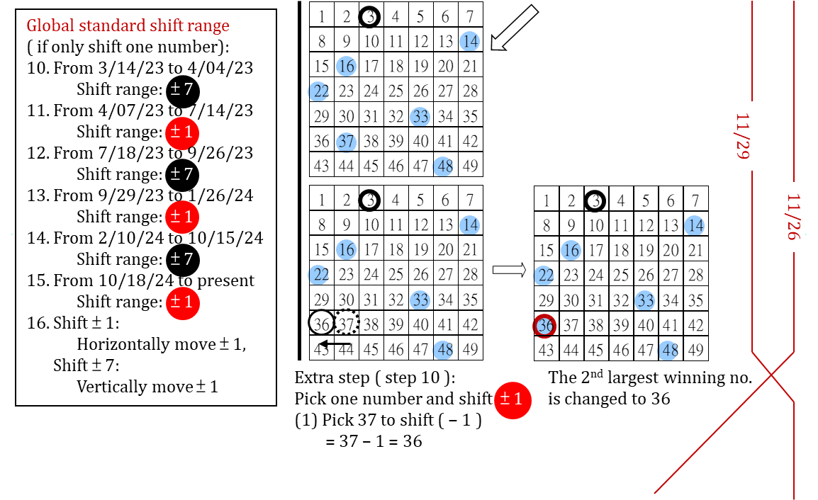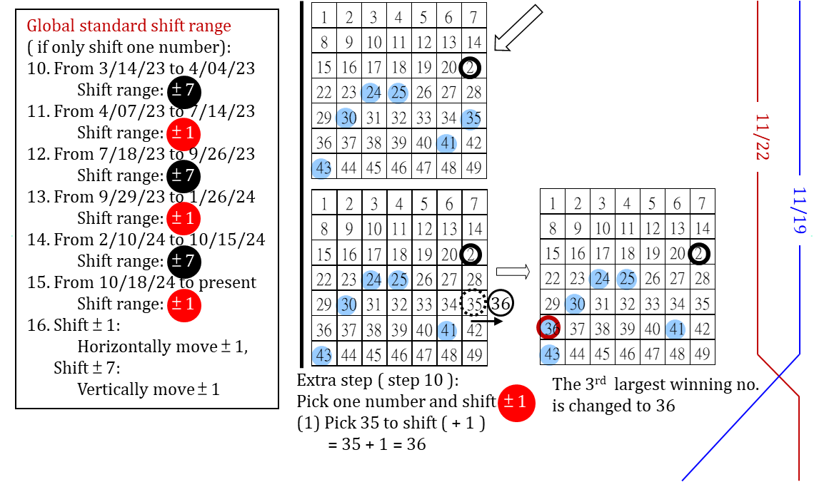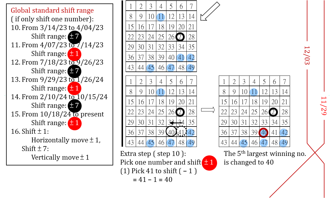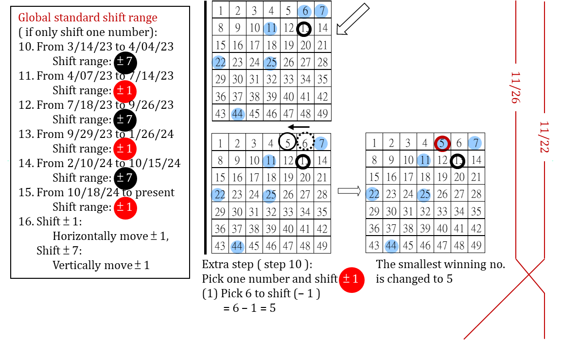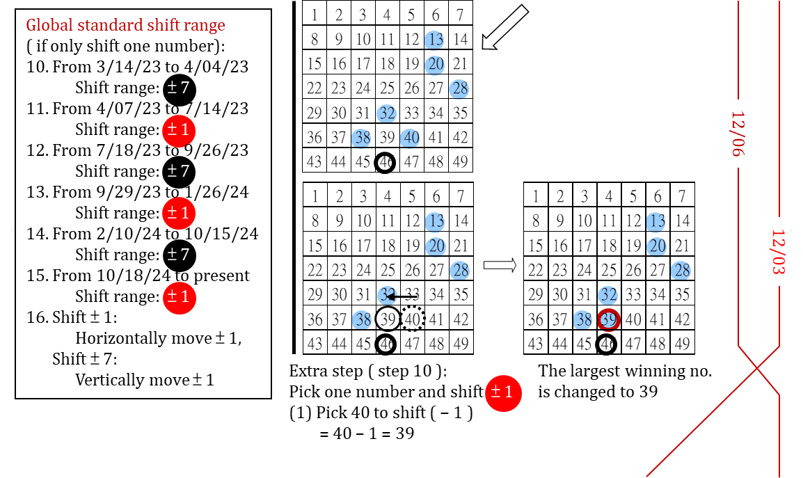 簡述大樂透 7 年來 ( 2018 - 2024 ) 台彩安排各期之 (1) 定位 P 的選取 (2) 大小挪移範圍設定 (325) -政府詐欺深似海