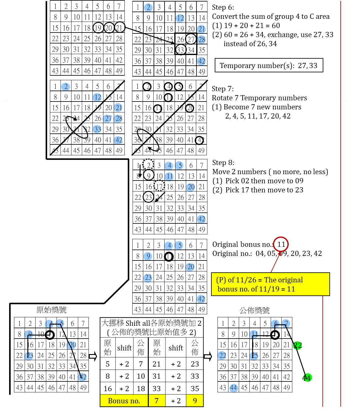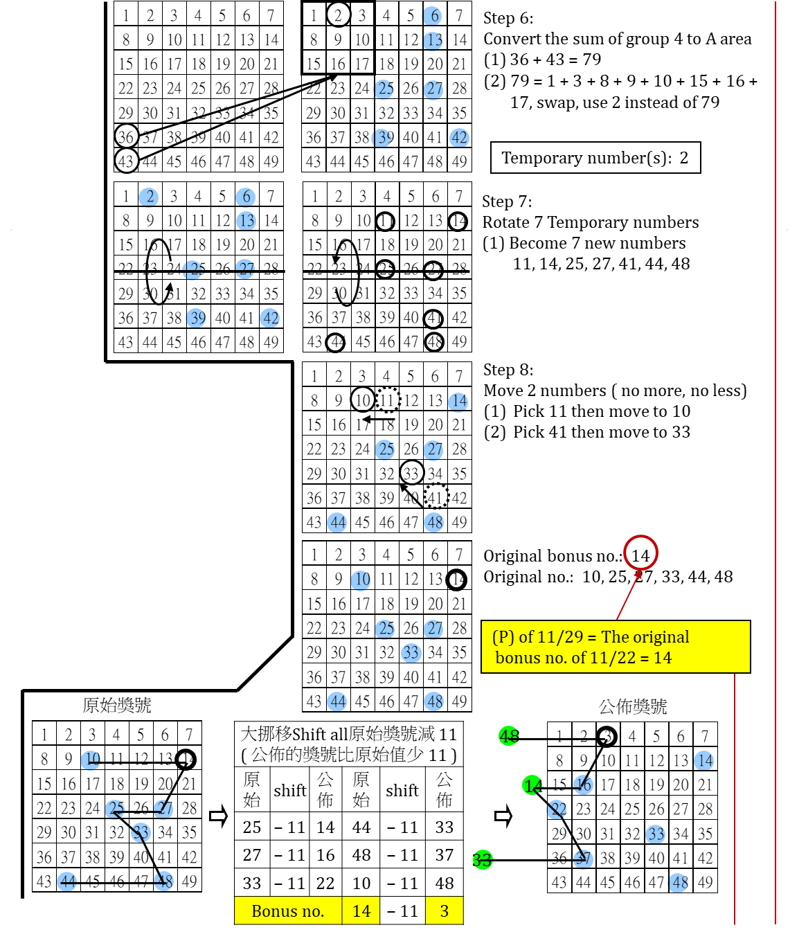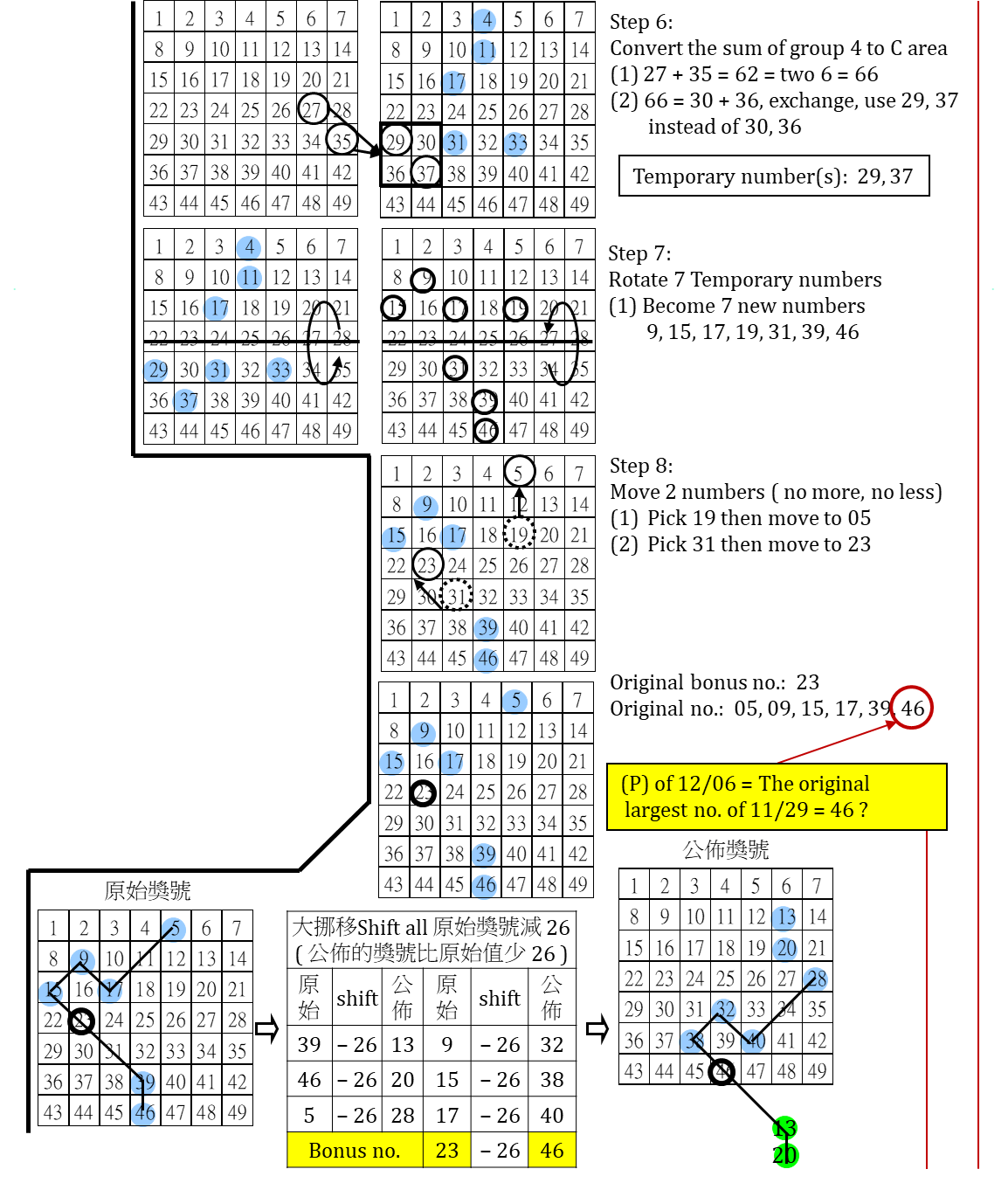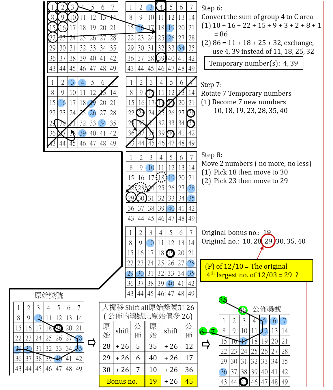 簡述大樂透 7 年來 ( 2018 - 2024 ) 台彩安排各期之 (1) 定位 P 的選取 (2) 大小挪移範圍設定 (325) -政府詐欺深似海