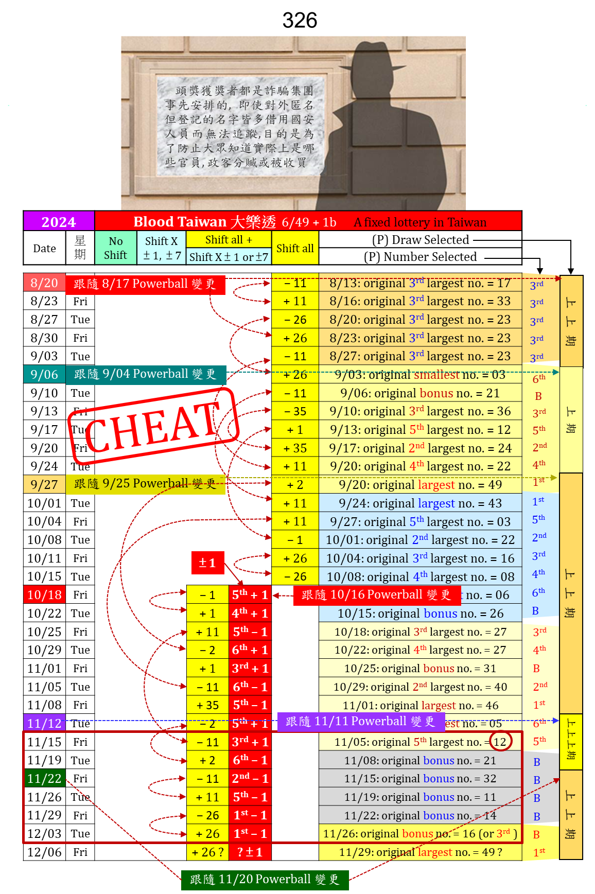 圖解大樂透 10/25-11/05 計 4 期 (324) - 統一發票頭獎作弊, 雲端發票抽獎也作弊, 都是因為執政黨操縱台彩作弊食髓知味