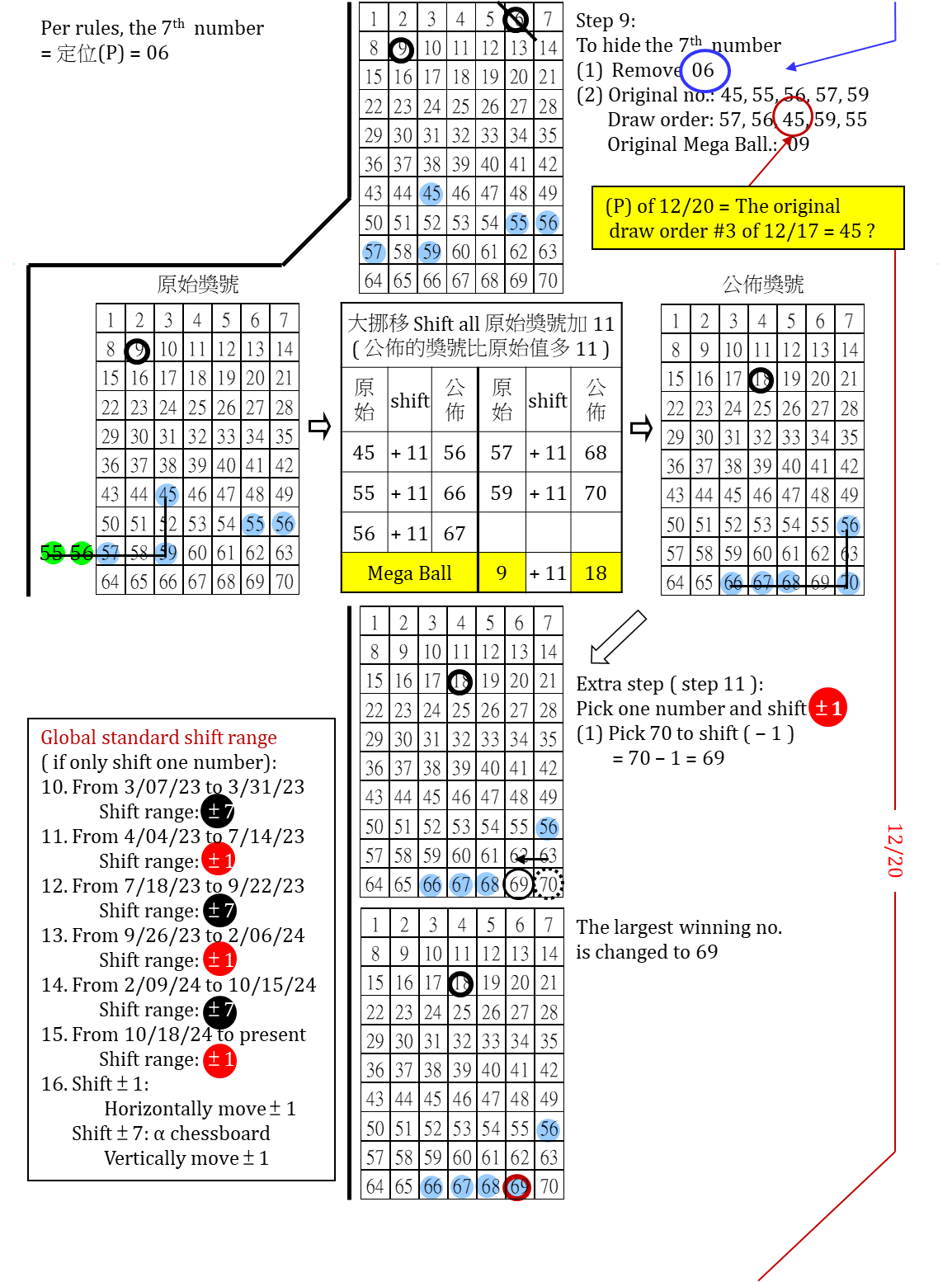 簡述大樂透 7 年來 ( 2018 - 2024 ) 台彩安排各期之 (1) 定位 P 的選取 (2) 大小挪移範圍設定 (325) -政府詐欺深似海