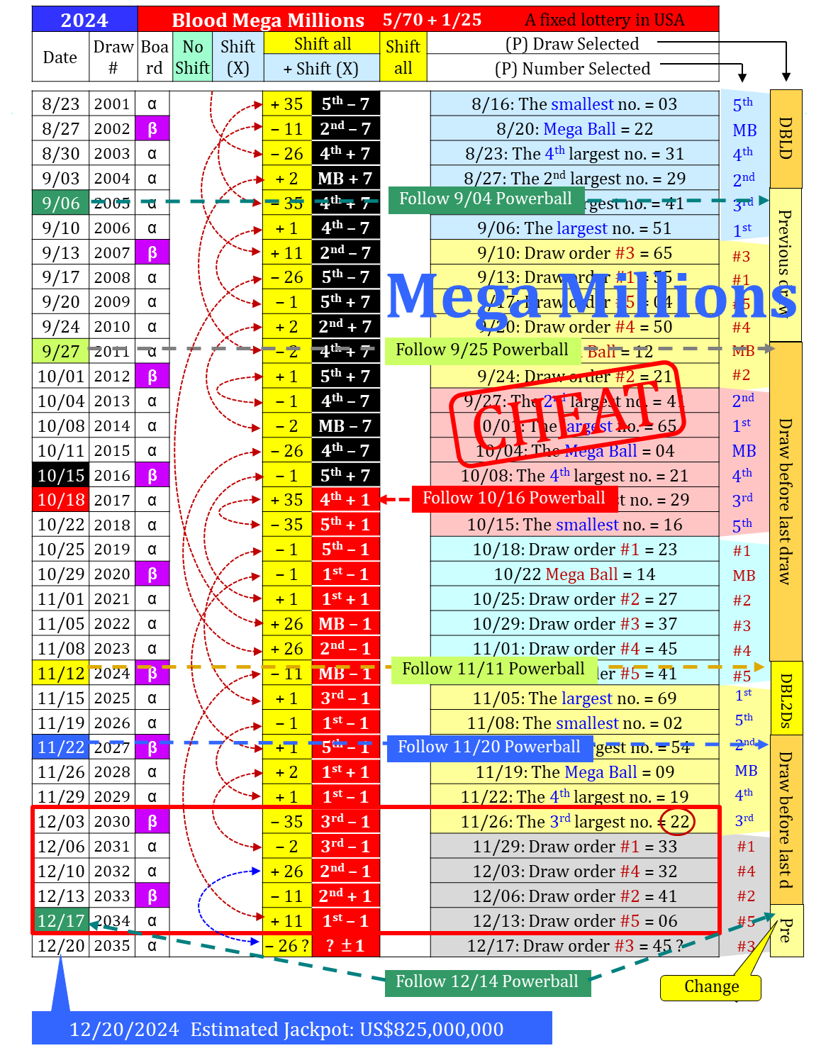 圖解美國兆彩 Mega Millions 12/03-12/17 計 5 期 ( 352 ) -兆彩頭獎已安排連槓28期, 12/20上看美金8.2億