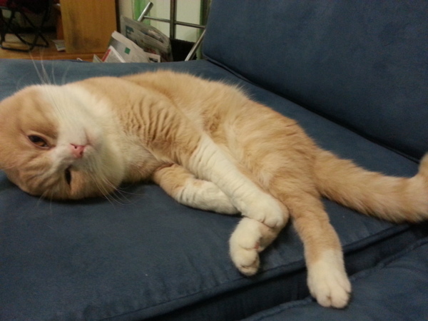 一開始二隻貓還很害羞,我故意躺在沙發上裝睡,沒想到真睡著了,未久一陣兵兵邦邦,二貓混熟了便開起了運動Party.