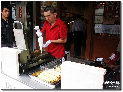 最後是我們在這條街上停留最久的「金儒家古早味糕餅店」(總店叫金三峽),因為大夥一邊欣賞店家現作手工蛋捲一邊試吃,如晞很喜歡碧羅春口味的手工蛋捲 金儒家地址:台北市大同區哈密街69號 電話: