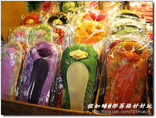 這條街最讓如晞流連忘返的是一家由傳統旗袍店轉型的「葳臻手工布包」,台北市應該有不少阿嬤級的老顧客,年輕時曾在此量身訂製旗袍。隨著歲月流轉,訂製旗袍的人愈來愈少了,還好葳臻負責人腦筋靈活,懂得跟上時代的腳步,成功轉型為製作時下流行的創意布包店。可喜的是,葳臻依然保留懷舊的布料以及傳統手工,並與時尚藝術相搭配,巧手縫製出琳瑯滿目的手作藝品,不管是化妝包、首飾包、面紙包、證件包、小錦囊、各式動物布偶擺飾等等,都非常BlingBling,叫人愛不釋手。相信出國時買來送外國朋友當伴手禮,一定大受歡迎!如晞的老外朋友都很迷戀有中國元素的東西。