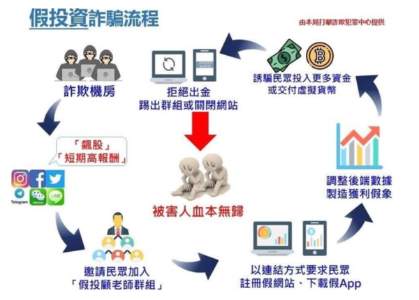 現在疫情已經過去很久了,但是還有很多人在困境走不出來,而且賺不到什麼錢,這個時候詐騙集團假投資就冒出來了,以低投資高回報低風險吸引民眾投資,很多人為了錢會失去頭腦,相信詐騙集團的話,跟著盲目投資,不止賠了自己僅有的存款,甚至被詐騙集團洗腦去銀行貸款,讓你的後半生也不會好過 通常他們會假扮漂亮女生或者高富帥男生,每天和你聊天給你分享好康資訊,還有他她的美好生活,讓你羨慕,漸漸的你也放下防備覺得投資也算不錯,記住這隻是開始,等你小賺的時候並成功把錢提出來一部分後,你就會肆無忌憚的加大投資,因為你急與賺錢,這個時候你就上鉤了,等你加大投資後假的投資平台會以你操作不當或者賬戶問題對你進行凍結,導致賬戶登陸不進,你會真的以為是自己的關係 接下來才是讓你痛不欲生的重點,為了拿回你自己的錢還有賺來的錢,平台會要求你一直入金 每一步都是精心設計好的,讓你完全陷進去想出也出不來,進退兩難,只能硬著透氣去銀行信貸,直到榨幹你沒有一點價值,詐騙集團才會離你而去,這個時候你什麼都沒有了,一個假的賬戶也登錄不進去,因為都是詐騙後台掌握,他們可以隨便改變你的數字,隨便改動你的賬密,讓你真的以為這就是真的 填上不會掉餡餅,更不會砸到你,不要等被騙完錢的時候才想起來,那個時候已經來不及了