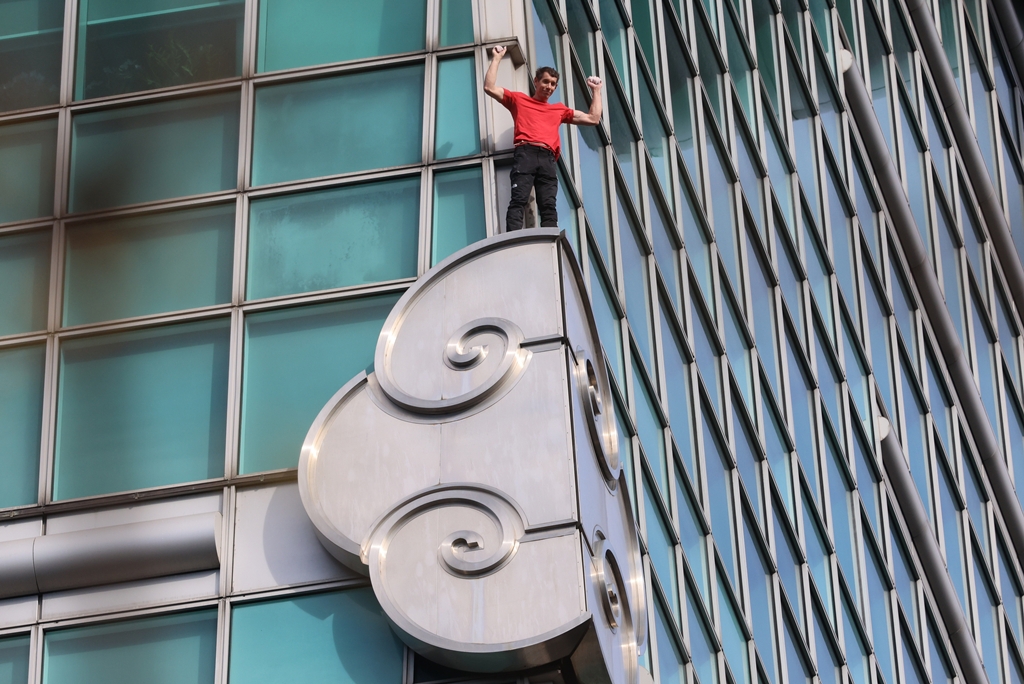霍諾德成功攻頂 台北101 。(圖/黃世麒攝)
