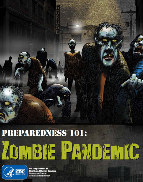 CDC甚至出版了一本名為《應變 101:喪屍大流行》(Preparedness 101: Zombie Pandemic)的35頁漫畫小說,以強調他們希望公眾學到的教訓。整本書可以在谷歌圖書上免費閱讀,或者也可免費下載PDF格式。整個書都是彩色的,並且旨在既有教育性又有娛樂性。