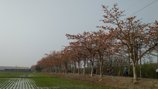 座落二林東螺溪旁,整排的木棉花道,紅粉花朵綻放鋪滿天空