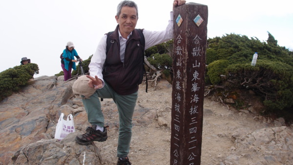 雙十登合歡東峰記 2016年今天攀登石門山和合歡尖山,2018年今天登合歡主峰,今年就來登合歡群峰中的合歡東峰。今年陣仗比往年多了鄰里的幾位同好同行,一行八人乘坐二部車開啟今日登合歡東峰之旅,早上六點準時出發。 合歡東峰為百岳之一(排名第35號,海拔高度3421公尺),是合歡群峰的第二高峰,山勢巍峨、峰頂開闊,天晴之時展望極佳,南湖大山、中央尖山、奇萊連峰,甚至連遠處的玉山群峰都可盡收眼底。 沿路上我們只在清靜農場小休片刻,抵達遊客中心已九點半了,此時高山上的溫度為十二度,雖著厚衣臉頰上仍感覺到有股沁涼的寒意,遠望四周高山青翠綠意,無垠的藍天,似是一幅寫真寫實的潑墨畫經典的作品,忘卻塵囂吵雜,體驗真實人生。 因洪金永夫妻不敵沿途彎道顛坡,故在車上休息。許炳煌和老婆朱玉花、陳吉宏和我一行四人自松雪樓出發,從登山口到峰頂落差約三百公尺,沿著呈45度陡坡的梯道往上攀爬,指標上寫著1.0KM,或是高山氧氣稀薄,每走一步都讓人氣喘唏噓,真的讓每位登頂的山客吃不消。在700m處有座廢墟磚造屋,是當年滑雪場的出發地點,現只供人憑弔。從此段開始,大部分碎石鋪路還算滿平緩。 攻頂站在峰頂,遠眺每座山勢崢嶸、巒層疊立,有種「登高山而小天下」。既然登上東峰,就免不了要拍張照片留下紀錄,個人照、夫妻照、好友照,這樣才滿足的走下山往回程走。此刻已十一點四十分,山嵐間已飄出雲海將遠處高山覆蓋,的確也不適合久留。回程比較快,抵達松雪樓已十二點十分,來回往返二小時,的確也是條老少咸宜的登山路線。合歡群峰的每條路線都很有特色,合歡山東峰山勢高聳秀麗,被列為百岳九峨之一,所以有人說,到合歡山區不能不登東峰呢! 國家的生日,也為自己留下感動的一刻。計畫明年攀登合歡北峰,再將另一座百岳入袋。