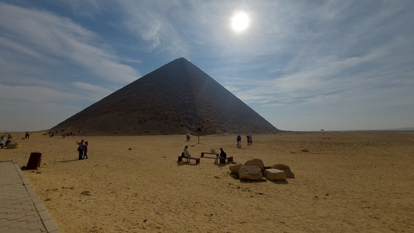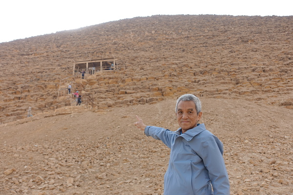 埃及之旅─紅色金字塔探險記 2024/12/10 埃及行第四天 紅色金字塔的入口位於金字塔北邊的半山腰,驗完票後進入窄窄的洞口(1.2*0.91公尺),需要先往下走61公尺長27°傾斜角度的階梯。面對一個陡峭低矮的傾斜通道,再加上狹小的空間,只能彎著腰小心翼翼的緩慢往下蹲著走。 第一個房間沒什麼大約12公尺高空間,再鑽入另一個洞口需彎著身體進去第二個房間,發現裡面建造約二層樓高旋轉木製階梯(方便遊客參觀),爬上後走幾步就可以瞧見棺槨停放的地方,裡面沒有木乃伊、珠寶首飾、聖甲蟲,甚至就連雕像或壁畫都沒有,真的就是一個字:空。(被盜光了) 通道內仍有隱晦的燈光,空氣算流通,無所謂怪味~~ 古埃及人相信死後的世界仍可以復生,因此法老在世時心心念念就是要建造一個死後的永恆居所,為了「讓靈魂不死,讓木乃伊保存」,這種宗教信仰的力量已近瘋狂!奈何那知在幾千年之後,靈魂非但無法讓木乃伊獲得重生,反而成為人類掠奪的產物,相信也非法老所能猜到的下場! 論語學而篇有句話:「慎終追遠,民德歸厚矣。」對亡者之禮能謹慎,對亡已久者能不斷追思,這樣風俗道德方能日趨於篤厚,法老若能當下所悟此真諦,著實也無須勞民傷財要花二十年來建造一座「有形」的金字塔! 紅色金字塔,斜坡蹲著走下去來回30分鐘,整團沒幾個人下去,出來腳都痠軟了,為了看死人墓穴,唉~ 不過,此行能進到紅色金字塔內部,一探究竟也算不虛此行了。 |
