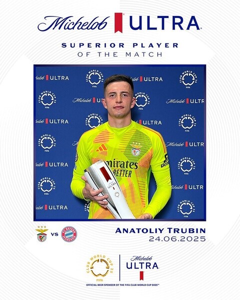 本非卡 門將 Trubin 獲選為 單場最佳球員