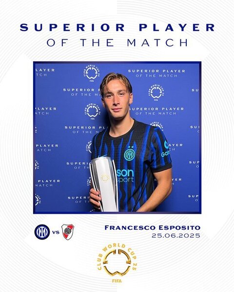 國米 前鋒 Esposito 獲選為 單場最佳球員