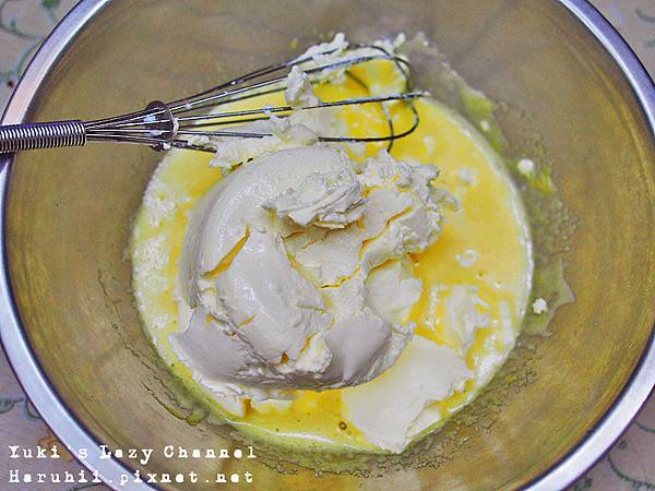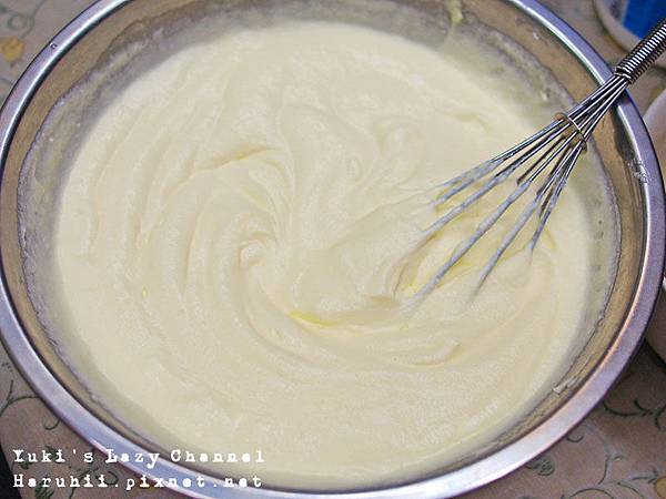 因為我的起司退冰不夠,所以剛開始拌起來有點吃力 使出吃奶的力氣攪拌後就變成滑順的起司糊了XD