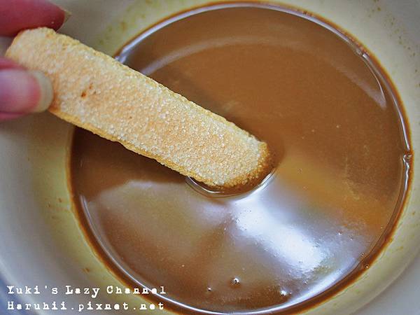 5. 迅速將手指餅乾兩面都沾過濃縮咖啡