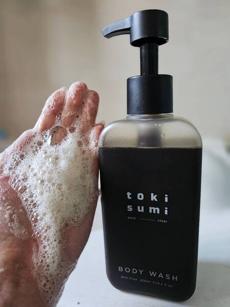 toki sumi黑皂液質地滑順輕盈,與傳統的濃稠泥狀產品截然不同 原本以為天然液態皂的起泡效果會比較不好 因為沒有添加人工起泡劑 結果天然的椰子油起泡效果也是很棒的 如此更易於塗抹和沖洗,並不會在皮膚上留下任何黏膩感 在搓揉洗淨過程中感受著被沙士糖泡泡包覆,甜滋滋的感覺 洗完澡後覺得肌膚不緊繃而且有洗乾淨的感覺 從開始搓揉起泡到洗澡過程與結束的感受,都非常舒適 就連洗完的排放水不會對環境造成污染這點,都讓我心情愉悅