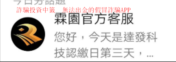| 通常詐騙集團會自己設置一款APP供你下載,裡面放好智明券商的名稱圖片,會幫助你給你安裝下載,你會賺錢獲利,其實都是虛擬數字罷了,而且你會想這是現實有名的券商投資,其實你想錯了,這就是詐騙集團故意安裝的app供你投資詐騙你的錢財的 千篇一律不變的就是詐騙集團剛開始會讓你小額出金,大額出金就會找藉口凍結你賬戶或者以你賬戶不過關理由無法出金,然後讓你一直入金才給你提現,一步一步套牢你,所以大家還是要小心的是交友軟體交友慎重,FB谷歌廣告投資要小心,都會以低風險低投資慢慢吸引你總會有人經不起誘惑大額投資,這就是所謂的詐騙集團廣撒網,總會抓到大魚的,會持續關注最新的詐騙平台,提醒各位民眾不要被蒙蔽雙眼,被騙的時候也要冷靜地頭腦面對