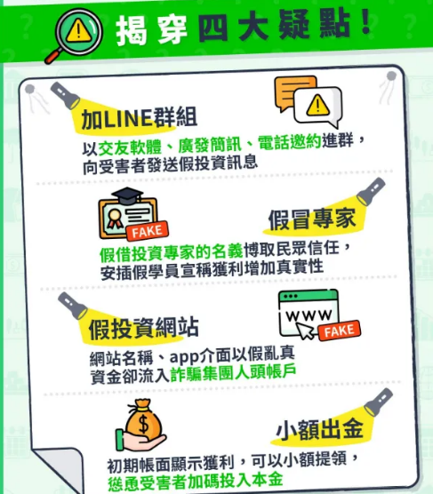 現在經濟不好,大多數人賺不到什麼錢,這個時候詐騙集團假投資就冒出來了,以低投資高回報低風險吸引民眾投資,很多人為了錢會失去頭腦,相信詐騙集團的話,跟著盲目投資,不止賠了自己僅有的存款,甚至被詐騙集團洗腦去銀行貸款,讓你的後半生也不會好過 通常他們會假扮漂亮女生或者高富帥男生,每天和你聊天給你分享好康資訊,還有他她的美好生活,讓你羨慕,漸漸的你也放下防備覺得投資也算不錯,記住這隻是開始,等你小賺的時候並成功把錢提出來一部分後,你就會肆無忌憚的加大投資,因為你急與賺錢,這個時候你就上鉤了,等你加大投資後假的投資平台會以你操作不當或者賬戶問題對你進行凍結,導致賬戶登陸不進,你會真的以為是自己的關係 接下來才是讓你痛不欲生的重點,為了拿回你自己的錢還有賺來的錢,平台會要求你一直入金 每一步都是精心設計好的,讓你完全陷進去想出也出不來,進退兩難,只能硬著透氣去銀行信貸,直到榨幹你沒有一點價值,詐騙集團才會離你而去,這個時候你什麼都沒有了,一個假的賬戶也登錄不進去,因為都是詐騙後台掌握,他們可以隨便改變你的數字,隨便改動你的賬密,讓你真的以為這就是真的 還有另外一種詐騙就是所謂的老師帶你買股票,剛開始給你推薦的股票還算可以,還能賺錢,等你們把錢投資的差不多的時候,再推薦其餘的股票,其實也就是仙股啦,直接會暴跌,讓你們投資進去的錢血本無歸,然後還要在賴群組演戲給你看,還有各種詐騙的演員和老師演一場戲給受害人看,說再帶你買其餘的股票一定可以賺回來,這些都是有話術的,千萬不要被這些詐騙集團的套路和演戲騙到 天上永遠不會掉餡餅,而且也砸不到人,更不會有陌生人突然關心你帶你賺錢,都是假的