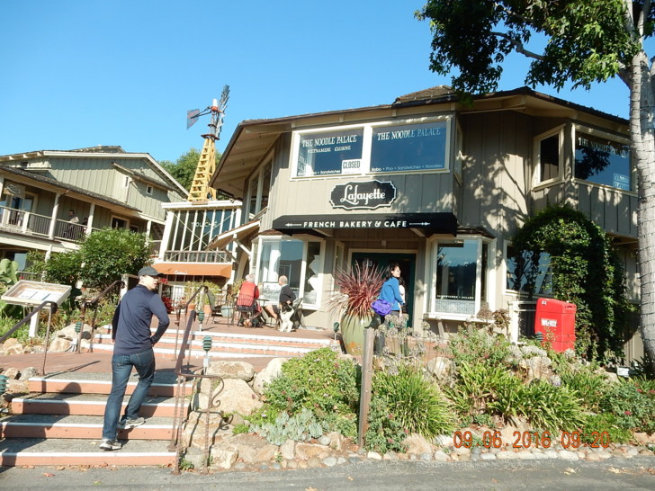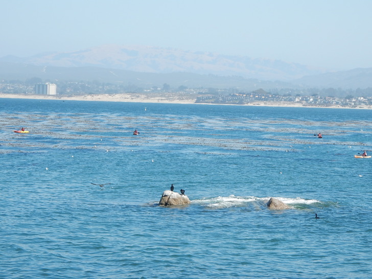 這就是鴨子滑水,暗中使勁兒 趁著大家看海獺,我們先去午餐。餐廳面對海灣,有絕佳的窗景。 吃完飯,出去欣賞蒙特雷灣的風景
