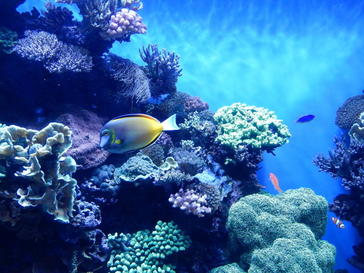 換一層樓,欣賞珊瑚、海馬、和美麗的熱帶魚