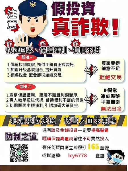 ✅ 初期讓你 「小額試玩、順利出金」,建立信任感。 ✅ 引導投資者 「加碼投資、再度充值」,此時開始拖延提款時間。 ✅ 當投資者想要提領大額資金時,開始 「強制收取保證金、手續費、驗證金」,若繳款,還會要求更多費用。 ✅ 最終 直接封鎖帳戶,資金無法取回,捲款消失! 其實從來沒有「被騙」這件事會發生在我自己身上,但它真的來得又快又狠。「我知道,那種絕望的感覺……」 錢沒了,夢碎了,身邊的人也離開了,整個人生像是一夕之間被抽空。每天醒來,腦子裡只剩下「為什麼會變成這樣?」自責、後悔、痛苦輪番折磨,甚至連活下去的動力都快沒了…… 最初是在Facebook上看到一個投資團隊,加入之後,一位自稱客服的女生加我好友,說可以帶我操作,讓資金賺到200%以上的利潤。最初我還半信半疑,但因為一開始投入小額資金後,真的能夠獲利,還能正常提領,所以我慢慢放下戒心,逐步加大投資金額。 然而,當我投的越多時,對方開始以「擔保金」、「保證金」、「扣稅金」等各種理由,要求我繼續匯款,否則無法提領收益。直到某天家裡臨時有事要用錢,我才意識到,這一切根本就是一場騙局。 我不敢跟家人說,只能自己默默承受,也報了警,但警局只說「需要時間調查」回去等待消息,但是後續一直沒有消息,中間也有再次詢問警局那邊講這筆錢很難拿回來了就當買個教訓,當時感到很無助,但我不甘心就這樣放棄。 我開始嘗試各種方法尋找回款,中間過程非常艱辛,甚至也想過放棄。但我告訴自己不能讓這些詐騙集團拿著我們的血汗錢在外面逍遙快活,逍遙法外。 後來,我決定不再沉淪,開始研究各種詐騙手法,在網路上分享自己的慘痛經歷,提醒大家不要輕信「穩賺不賠」的投資騙局。我也投入公益,協助其他受害者,希望能幫助更多人擦亮眼睛,避免掉入陷阱。幸運的是,我在政府工作的閨蜜幫我介紹認識了一位貴人,他有專業的資金追流管道,透過他的協助,我最後成功追回了一大部分的資金! 這讓我更加堅定,要站出來提醒更多人,提高防詐意識,不要讓詐騙毀掉自己的生活。這條路不好走,但如果能讓更多人警覺,讓更多家庭免於破碎,我覺得這一切都值得。