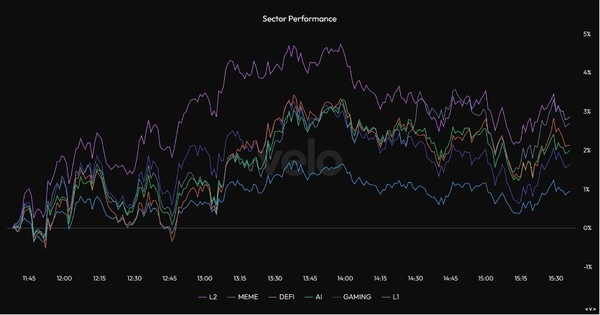 如前所述,Layer 2解決方案是今天表現最好的領域,隨著代幣價格開始從近期的回調中反彈。