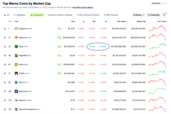 盡管迷因幣市場在過去24小時內出現了12%的暫時性下跌,但團隊顯然做出了正確的選擇,將 Pepe 作為Layer 2解決方案的對象。