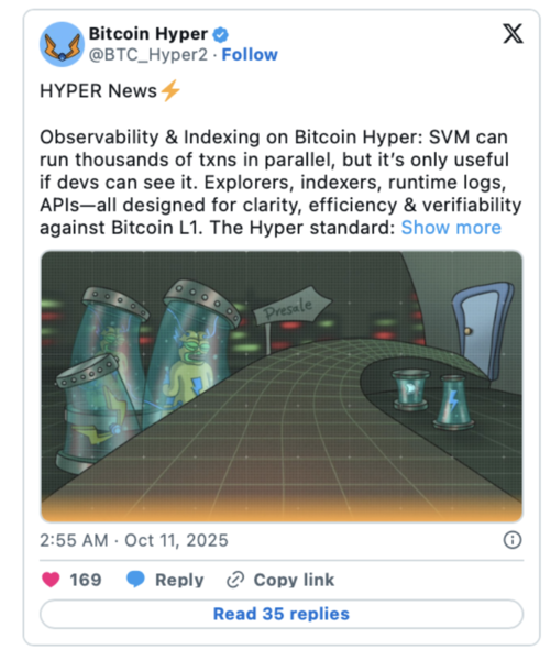 https://twitter.com/BTC_Hyper2/status/1976723197690253389 然而,Bitcoin Hyper 生態系統的真正核心力量,來自它與比特幣本身的連結。在 Bitcoin Hyper 網路中,使用者透過 將 BTC 鎖定進「正統橋接」 來參與交互,並在鏈上鑄造與之對應的 封裝版 BTC。此封裝資產可在各類去中心化應用(dApp)中流通,作為主要的交換媒介使用。 這種封裝 BTC 與主鏈上的真實比特幣保持 1:1 錨定與儲備,確保了 完全透明與鏈上安全性。當用戶希望取回原始 BTC 時,只需銷毀相應數量的封裝代幣,即可觸發橋接機制,從橋中釋放等額的比特幣。 透過這項簡潔而安全的機制,Bitcoin Hyper成功融合了比特幣最強的兩大特性——安全性與信任性——並疊加 Solana 級別的高速執行性能,在同一 Layer-2 架構下實現了性能與安全的統一。 投資者信心持續升溫,Bitcoin Hyper 正在重塑比特幣的實用價值在 Bitcoin Hyper 推動的新架構下,早期投資者的積極參與並不令人意外。光是本月,就有超過 540 萬美元 的資金流入 Bitcoin Hyper 的預售階段,其中相當部分來自近幾週入場的 鯨魚投資者。其中一位大型鯨魚單筆投入 超過 80 萬美元,以便在價格進一步上漲前盡可能鎖定 HYPER 代幣。 推動這種信心的關鍵原因在於:Bitcoin Hyper 不僅促進了混合型應用的發展,還在機制上擴展了比特幣的需求場景。它讓 BTC 不再僅僅作為一種價值儲存手段,而是成為生態系統內廣泛使用的 交換媒介,被用於多種去中心化應用的交易與互動中。 多年來,比特幣價格上漲幾乎完全由「價值儲藏」敘事驅動,而非實際使用需求。 Bitcoin Hyper 有潛力重塑這種格局,透過引入基於實用性的使用場景,創造全新的 BTC 需求驅動邏輯。 在這個生態系統中,HYPER 代幣 扮演著核心角色:它既是 治理代幣,也是 燃料代幣,用於支付網絡交易費用;同時,它還作為 質押資產,用於保障網絡安全與參與者權益。 目前市場對該項目的信任度已初步顯現——超過 10 億枚 HYPER 代幣已被質押。以目前的預售募資規模與代幣價格計算,這意味著 約有 53% 的預售代幣已被鎖定質押,反映出投資者對專案長期價值的高度認可。