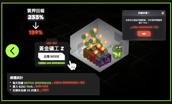 2025年10月29日星期三——震撼GameFi領域的新興「挖礦即賺」專案PepeNode(PEPENODE),正進入當前預售輪的最後24小時倒數。 目前已籌集近198萬美元,代幣以每枚$0.0011227的價格出售,預計在本輪結束並進入下一階段後價格將上調。 讓交易者為之注目的,是該專案將加密挖礦遊戲化的創新方式——玩家不再需要運行礦機,而是運行策略,將原本高成本的競賽轉化為一場數位化的策略遊戲。 而時機再完美不過。Moonvember熱潮正盛,市場看好PepeNode有望成為這個對加密市場而言極具看漲潛力月份中的黑馬新星。 因此,如果你打算加入這場遊戲,最好趕在截止前行動。立即前往PepeNode官方網站,在預售結束前鎖定你的代幣——因為現在的價格,或許是PEPENODE登上主流交易所前的最後低點。 如何玩PepeNode?PepeNode將「遊戲化挖礦」的概念轉化為一種完整結合挖礦與遊戲的全新體驗。 越聰明地配置與升級節點,你的虛擬礦機就越強大——提升算力(hashrate)並獲得更高比例的獎勵。