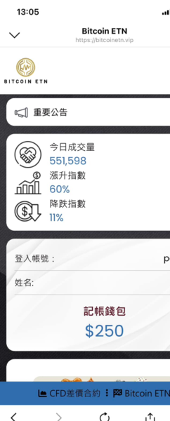涉詐黑平台「Bitcoin ETN」民眾通報假投資(博弈)詐騙網站