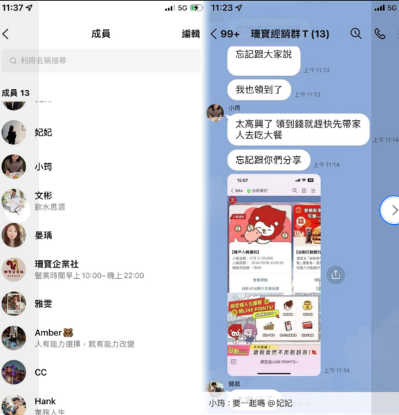 2、當被害者上鉤後,歹徒會介紹其他「客服、老師、助理」同夥加 LINE 聯繫或加入LINE投資群組,並提供假投資網站或App給被害人註冊、下載安裝及操作,此時LINE群組內不斷有其他假學員獲利貼文。