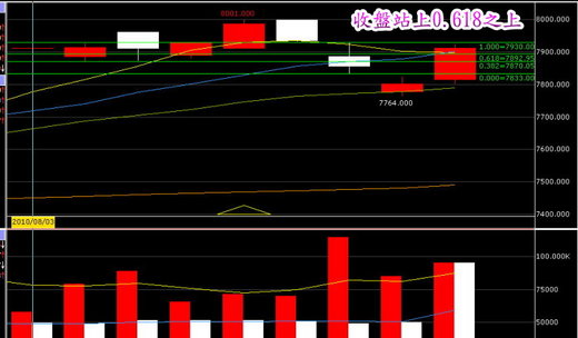 1.台指期8/13收盤站上8/11高低點幅度的0.618之上..屬於多頭強勢收盤