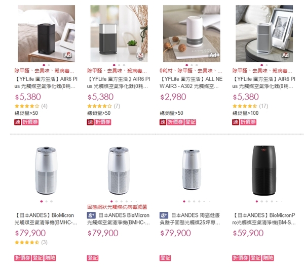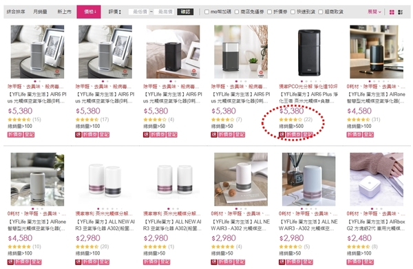 看Brise賣的配備來看,他是一間使用hepa濾網型的空氣清淨機廠商,不是我們這次的討論範圍,我們這次還是以「光觸媒淨化設備」來做比較。 但有一點還是感覺很奇怪,為什麼Brise在momo上面的留言也很少,但他又說自己賣的很好,怪! 接下來我們看一下第二間:【YFLife 圓方生活】AIR6 Plus 光觸媒空氣淨化器 我在搜尋光觸媒淨化器時,發現一個很奇怪的現象,那就是「價格」差很大!