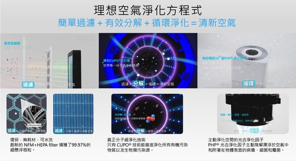 很多網友都知道,空氣清淨機分為二大類,第一大類是採過濾式HEPA濾網來過濾空氣中的雜質(???),譬如像是花粉、或是人人聞之色變的PM2.5;而第二大類就是分解型的空氣清淨機,目前的主流是利用光觸媒電洞效應及離子化效應的淨化器,而像是很多人討厭的二手菸味道、或是裝潢後的甲醛味道,因為是奈米級的污染物,用過濾的方式沒有辦法處理,就只能用分解型的空氣清淨機來解決了!