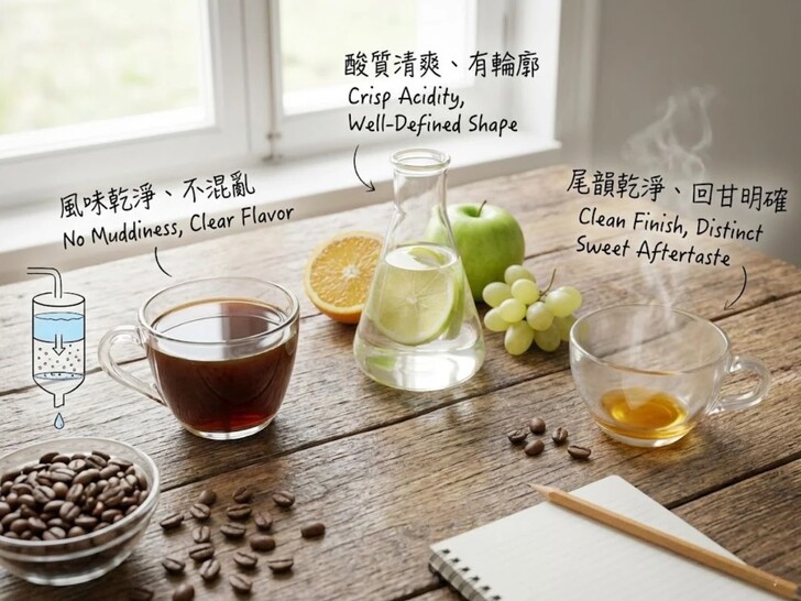 二、水洗咖啡豆喝起來是什麼感覺?風味乾淨、不混亂水洗咖啡豆最直觀的感受,就是入口後風味非常清楚、有方向感。你不太會遇到那種「說不上來是什麼味道」的混亂感,也很少出現發酵味、酒感過重或悶悶的雜訊。對於剛接觸精品咖啡,或是想單純喝一杯順口咖啡的人來說,水洗處理是非常友善的選擇,幾乎不需要太多練習,就能感受到風味差異。 酸質比較清爽、有輪廓相較於日曬或特殊處理法,水洗咖啡豆的酸感通常比較乾淨、清楚,而且「有形狀」。這種酸不是刺舌或刺激胃的尖酸,而是像柑橘、青蘋果、白葡萄或茶感那樣的清爽酸質。即使你平常對酸比較敏感,也比較容易接受水洗咖啡的酸度,因為它不會突然冒出來搶戲,而是自然融在整體風味裡。 尾韻乾淨、回甘明確好的水洗咖啡豆,在喝下去之後,嘴巴裡留下的感覺通常是乾淨的。不會有苦味卡住、口腔乾澀或黏膩感,而是慢慢浮現出淡淡甜感或香氣殘留,讓人覺得舒服、清爽。這種回甘表現是許多人選擇水洗咖啡豆的重要原因之一。 更多咖啡知識文章 請到 >> https://first-cafe.com 咖啡豆推薦購買 請到 >> https://www.bestbet.tw