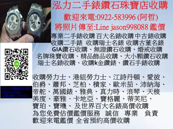 本公司 泓力二手錶鑽石珠寶店 專業經營高價腕錶鑽石珠寶收購買賣交流 泓力二手錶鑽石珠寶店 誠信永續經營 (非當舖體系) 全省高價收購專線:0922583996 阿哲 泓力二手錶鑽石珠寶收購 LINE ID : jason998088 ~傳圖片,為您鑑價~ WeChat ID : jason998088 ~傳圖片,為您鑑價~ E MAIL : jason998088@gmail.com ~傳圖片,為您鑑價~ 高價收購 現金交易 全省預約服務 大台北地區來電馬上服務 為您免費估價鑑價服務。 誠信 專業 負責 ~~歡迎來電洽詢~~ 高級名錶高價收購 機械錶收購 石英鑽錶回收 勞力士錶收購、收購百達翡麗、收購江詩丹頓、收購寶珀錶、收購寶璣錶、收購愛彼、收購格拉蘇蒂錶、收購法蘭克穆勒、收購伯爵錶、收購蕭邦錶、收購芝柏錶、收購積家、收購百年靈、收購格林漢、收購歐米茄錶、收購帝舵錶、收購沛納海錶、收購萬寶龍錶、收購IWC萬國錶、收購浪琴錶、收購美度錶、收購天梭錶、收購真力時錶、 收購波爾錶、收購豪雅錶、收購豪利時錶、收購雅典錶 收購愛寶時、收購沛納海錶、收購寶齊萊錶、收購蒂芙尼錶、收購卡地亞錶、收購香奈兒錶、收購寶格麗錶、收購路易•威登錶、收購愛馬仕錶、收購星辰表錶、收購雷達錶、收購精工錶錶、蘇黎世鑽錶手錶…..世界百大名錶收購買賣交流 收購勞力士老錶、港製勞力士收購、K金手錶收購、老款勞力士收購、舊勞力士收購、勞力士配件收購 勞力士機芯收購 老表買賣、名錶維修、手上鍊手表收購 機械表買賣、機械錶收購、石英錶收購、精品珠寶手錶收購、收購古董鐘錶、K金手錶收購、古董手錶收購、收購鑽石手錶、懷錶收購、中古錶收購、二手手錶收購 、故障手錶收購、手錶配件收購、收購積家空氣鐘、男女鑽錶收購、代客贖回當鋪手錶、舊勞力士錶收購 鏤空手錶 收購懷錶 回收舊錶 收購名錶 勞力士金錶 收購二手錶店 代客贖回當鋪手錶、代客贖回當鋪珠寶鑽石、黃金收購、白金收購、k金回收 高價鑽石珠寶收購回收 收購鑽石,鑽石鑽戒,鑽石手鍊,鑽石項鍊,鑽石手環、k金戒指、鑽石線戒、紅寶石,藍寶石、黃金收購、白金收購、貴金屬回收888 收購珠寶、鑽石收購、收購Tiffany鑽戒,卡地亞鑽石珠寶、收購BVLGARI珠寶、收購卡地亞(Cartier) 收購寶格麗(Bvlgari) 收購蒂芬妮 (Tiffany & Co.)收購伯爵(Piaget) 收購蕭邦 收購格拉夫(GRAFF) 收購梵克雅寶(Van Cleef & Arpels)收購戴比爾斯(DE BEERS) 收購戴瑞(DarryRing) 收購海瑞溫斯頓(Harry Winston) 收購寶詩龍(BOUCHERON) 收購戴瑞(Darry Ring) 收購蒂爵(DERIER) 收購德米亞尼(Damiani) 收購御木本(MIKIMOTO)、收購香奈兒‧‧‧‧收購各大品牌精品 鑽戒,鑽石,手鍊,項鍊,k金戒指,收購精品,收購名牌鑽石鑽戒,收購GIA鑽石,線戒鑽石,鑽石飾品收購,收購鑽戒,收購鑽石戒指,收購鑽錶,收購鑽石項鍊、收購鑽石價格,鑽石估價,收購鑽石珠寶,收購鑽石真品,鑽石買賣,回收鑽石,鑽石回收 、GIA鑽石回收、收購鑽石手鍊、收購鑽石項鍊、k金回收、收購二手飾金、K金收購、K金戒指、K金項鍊、K金手鍊、K金耳環 專營鑽石飾品珠寶k金回收,沒有在帶的飾品k金戒指,放著又沒用想變現嗎?一律現金高價回收不論有無證鑽石,GIA,HRD、EGL等...國際證書一律可以回收,或大至小碎鑽的小飾品都可以回收歡迎來電鑑價 收購二手手錶 鑽石、鑽戒、紅寶石、藍寶石、鑽石、珠寶、精品、黃金,任何錶( 老錶 故障錶 k金老錶 不會動的錶 石英錶) 均有意願收購,全省一通電話、專人為您服務 收購 Rolex勞力士手錶、Vacheron Constantin 江詩丹頓、PIAGET伯爵手錶、LONGINES浪琴、CHOPARD 蕭邦手錶、CORUM崑崙手錶、Breguet 寶璣、A.Lange&Sohne朗格手錶、BREITLING百年靈、BVLGARI寶格麗手錶、愛彼(AP) 、PATEK PHILIPPE百達翡麗、FRANCK MULLER法蘭克穆勒手錶、Omega歐米茄、Cartier卡地亞、、BLANCPAIN寶鉑、BELL&ROSS柏萊士、CHANEL香奈兒、GIRAD-PERREGAUX芝柏、GRAHAM格林漢、IWC萬國錶、JAEGER-LECOULTRE積家、MONTBLANC萬寶龍、RADO雷達、SEIKO精工、TISSOT天梭、TUDOR帝舵、ULYSSENARDIN雅典、ZENITH真力時 名錶收購 Rolex勞力士手錶、Vacheron Constantin 江詩擔丹頓、PIAGET伯爵手錶、LONGINES浪琴、CHOPARD 蕭邦手錶、CORUM崑崙手錶、Breguet 寶璣、A.Lange&Sohne朗格手錶、BREITLING百年靈、BVLGARI寶格麗手錶、愛彼(AP) 、PATEK PHILIPPE百達翡麗、FRANCK MULLER法蘭克穆勒手錶、Omega歐米茄、Cartier卡地亞、Jaeger積家、IWC萬國錶、Montblanc萬寶龍、ZENITH真力時、PANERAI沛納海、GELISHIDAN格黎詩丹、SURICH蘇黎世...等百大名錶。 收購鑽石、收購鑽戒、收購裸鑽、收購鑽石項鍊、收購各式鑽戒、收購GIA鑽石、收購鑽石戒指、收購鑽石飾品、收購各式證書鑽石、收購鑽石手鍊、收購不分品牌鑽石大小,收購有證書鑽石、收購無證書鑽石、購收珠寶、收購紅寶石、收購藍寶石,均有回收收購服務,本公司均有意願高價收購。 表迷們好羨慕郭富城 搶先擁有陶瓷圈「浪鬼」 2018-10-06 16:11聯合報 記者曾智緯 (詳細全文請至聯合報新聞網 udn STYLE) 好久不見的天王郭富城日前因新作《無雙》上映,特別來台宣傳,他還現身首映場與影迷零距離一同觀影。不過,身為浪琴表(Longines)優雅大使的他,此次來台還搶先獲贈了人人都想要的新款「浪鬼」,讓表迷們好不羨慕。