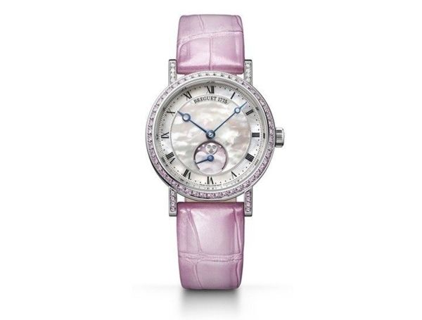 圖/寶璣表提供 在30毫米的白金錶殼上,有著精挑細選才能組合出來的漸變色調鑽石及粉紅寶石。寶璣還相當具巧思地將上方及下方的錶耳分別用鑽石和粉紅寶石鑲飾,更顯出獨樹一格的設計感。錶帶選用粉紅色漸變色調的磨砂短吻鱷魚皮,與有如雲彩般的珍珠貝母面盤相互映襯下,整只腕錶都散發著美麗的喜悅。這款果敢浪漫的Classique 9085腕錶6時位置的月相盤乃是以粉紅色瓷漆繪製背景,在粉紅色心形貝母後週期性地展演月相盈虧,以時尚的方式呈現腕錶功能。 獨特的細節設計凸顯了寶璣在Classique系列強調的美學特徵,這款限量情人節版腕錶也絕不會少了極具特色的錢幣錶框坑紋,針尖鏤空的藍鋼寶璣指針及獨立編號等寶璣標誌性元素。 Classique Phase de Lune Dame 9085搭載的是精準度與穩定性早已備受肯定的537L自動上鏈機芯。就像所有寶璣的機芯一樣經過精心手工打磨,夾板上飾以日內瓦波紋,而自動盤則以麥穗紋機刻雕花作裝飾,由內而外盡顯寶璣唯美風範。 寶璣推出全世界限量14只,編號12敬獻台灣寶璣旗艦店,即日起至1月底僅開放預覽。 台北101寶璣旗艦店情人節典藏珠寶鐘錶展:2018/2/1~2/14。