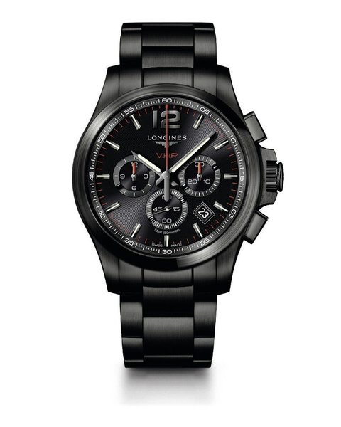 浪琴表征服者系列V.H.P.計時碼表,黑色PVD鍍層不鏽鋼表殼,約65,400元。圖/Longines提供 (詳細全文請至聯合報新聞網 udn STYLE) |