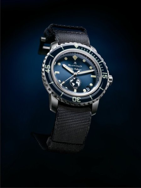 寶珀第三代BOC腕表承襲了Blanpain在1953年時所打造的五十噚表款特色。 圖/Blancpain提供 雅典表(Ulysse Nardin)在今年也推出了一款限量Deep Dive千米潛水表,概念來自瀕臨絕種的鎚頭鯊,適用於長時間深潛或飽和潛水。採用帶有專利矽質槓桿和擒縱輪配置、矽材質游絲的自製UN-320機芯,除此之外,包括位於2點鐘位置表冠上的可拆卸鈦金屬保護裝置、9點鐘位置的排氦閥門,都是雅典表的的全新技術運用。另外,所搭配的橡膠表帶亦開創先河,配有一個可擴展組件,在潛水期間,可根據潛水服壓縮引起的手腕尺寸變化而調整。表殼為鈦金屬材質,並配有切割邊緣表耳,表盤裝飾15條錘頭鯊、計時盤上也裝飾一條錘頭鯊,傳達品牌對於海洋生態關注的決心。