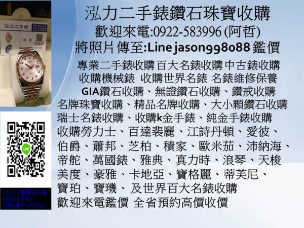 本公司 泓力二手錶鑽石珠寶店 專業經營高價腕錶鑽石珠寶收購買賣交流 泓力二手錶鑽石珠寶店 誠信永續經營 (非當舖體系) 全省高價收購專線:0922583996 阿哲 泓力二手錶鑽石珠寶收購 LINE ID : jason998088 ~傳圖片,為您鑑價~ WeChat ID : jason998088 ~傳圖片,為您鑑價~ E MAIL : jason998088@gmail.com ~傳圖片,為您鑑價~ 高價收購 現金交易 全省預約服務 大台北地區來電馬上服務 為您免費估價鑑價服務。 誠信 專業 負責 ~~歡迎來電洽詢~~ 高級名錶高價收購 機械錶收購 石英鑽錶回收 勞力士錶收購、收購百達翡麗、收購江詩丹頓、收購寶珀錶、收購寶璣錶、收購愛彼、收購格拉蘇蒂錶、收購法蘭克穆勒、收購伯爵錶、收購蕭邦錶、收購芝柏錶、收購積家、收購百年靈、收購格林漢、收購歐米茄錶、收購帝舵錶、收購沛納海錶、收購萬寶龍錶、收購IWC萬國錶、收購浪琴錶、收購美度錶、收購天梭錶、收購真力時錶、 收購波爾錶、收購豪雅錶、收購豪利時錶、收購雅典錶 收購愛寶時、收購沛納海錶、收購寶齊萊錶、收購蒂芙尼錶、收購卡地亞錶、收購香奈兒錶、收購寶格麗錶、收購路易•威登錶、收購愛馬仕錶、收購星辰表錶、收購雷達錶、收購精工錶錶、蘇黎世鑽錶手錶…..世界百大名錶收購買賣交流 收購勞力士老錶、港製勞力士收購、K金手錶收購、老款勞力士收購、舊勞力士收購、勞力士配件收購 勞力士機芯收購 老表買賣、名錶維修、手上鍊手表收購 機械表買賣、機械錶收購、石英錶收購、精品珠寶手錶收購、收購古董鐘錶、K金手錶收購、古董手錶收購、收購鑽石手錶、懷錶收購、中古錶收購、二手手錶收購 、故障手錶收購、手錶配件收購、收購積家空氣鐘、男女鑽錶收購、代客贖回當鋪手錶、舊勞力士錶收購 鏤空手錶 收購懷錶 回收舊錶 收購名錶 勞力士金錶 收購二手錶店 代客贖回當鋪手錶、代客贖回當鋪珠寶鑽石、黃金收購、白金收購、k金回收 高價鑽石珠寶收購回收 收購鑽石,鑽石鑽戒,鑽石手鍊,鑽石項鍊,鑽石手環、k金戒指、鑽石線戒、紅寶石,藍寶石、黃金收購、白金收購、貴金屬回收 收購珠寶、鑽石收購、收購Tiffany鑽戒,卡地亞鑽石珠寶、收購BVLGARI珠寶、收購卡地亞(Cartier) 收購寶格麗(Bvlgari) 收購蒂芬妮 (Tiffany & Co.)收購伯爵(Piaget) 收購蕭邦 收購格拉夫(GRAFF) 收購梵克雅寶(Van Cleef & Arpels)收購戴比爾斯(DE BEERS) 收購戴瑞(DarryRing) 收購海瑞溫斯頓(Harry Winston) 收購寶詩龍(BOUCHERON) 收購戴瑞(Darry Ring) 收購蒂爵(DERIER) 收購德米亞尼(Damiani) 收購御木本(MIKIMOTO)、收購香奈兒‧‧‧‧收購各大品牌精品 鑽戒,鑽石,手鍊,項鍊,k金戒指,收購精品,收購名牌鑽石鑽戒,收購GIA鑽石,線戒鑽石,鑽石飾品收購,收購鑽戒,收購鑽石戒指,收購鑽錶,收購鑽石項鍊、收購鑽石價格,鑽石估價,收購鑽石珠寶,收購鑽石真品,鑽石買賣,回收鑽石,鑽石回收 、GIA鑽石回收、收購鑽石手鍊、收購鑽石項鍊、k金回收、收購二手飾金、K金收購、K金戒指、K金項鍊、K金手鍊、K金耳環 專營鑽石飾品珠寶k金回收,沒有在帶的飾品k金戒指,放著又沒用想變現嗎?一律現金高價回收不論有無證鑽石,GIA,HRD、EGL等...國際證書一律可以回收,或大至小碎鑽的小飾品都可以回收歡迎來電鑑價 勞力士收購、名錶收購、百大名錶收購、中古錶收購、k金錶回收、鑽錶收購、鑽石收購、黃k金錶、二手錶回收、舊錶出售、中古勞力士買賣、舊錶收購、勞力士港製,原裝,好壞全收,二手錶收購 、K金手錶,、蘇黎世錶、二手勞力士買賣、格黎詩丹手錶K金錶、3p 名錶收購、港製勞力士收購、老錶收購、收購古董錶、勞力士錶收購、 3P高級手錶收購、瑞士名錶收購、收購機械式鐘錶,港製勞力士收購、黃k金錶、老錶回收、如手動、自動、日曆、年曆、萬年曆、響鈴、二問錶、三問錶 名錶收購 Rolex勞力士手錶、Vacheron Constantin 江詩擔丹頓、PIAGET伯爵手錶、LONGINES浪琴、CHOPARD 蕭邦手錶、CORUM崑崙手錶、Breguet 寶璣、A.Lange&Sohne朗格手錶、BREITLING百年靈、BVLGARI寶格麗手錶、愛彼(AP) 、PATEK PHILIPPE百達翡麗、FRANCK MULLER法蘭克穆勒手錶、Omega歐米茄、Cartier卡地亞、Jaeger積家、IWC萬國錶、Montblanc萬寶龍、ZENITH真力時、PANERAI沛納海、GELISHIDAN格黎詩丹、SURICH蘇黎世...等百大名錶。 收購鑽石 鑽石、鑽戒、裸鑽、鑽石項鍊、各式鑽戒、GIA鑽石、鑽石戒指、鑽石飾品、各式證書鑽石、鑽石手鍊、不分品牌鑽石大小,有證書鑽石、無證書鑽石、珠寶、紅寶石、藍寶石,均有回收收購服務,本公司均有意願高價收購。 寶珀表推出限量潛水表 每賣一只就捐1,000歐元 為了世界海洋日,寶珀表(Blancpain)再度打造品牌第3只的限量潛水表,延續過往傳統的設計,並且允諾每賣出一只表,即會捐出一定金額,藉以彰顯品牌「心繫海洋」的投入。 睽違兩年後,Blanpain推出品牌第三代「心繫海洋」(BOC)限量版潛水腕表,並承諾只要購買其一,便將捐贈出1,000歐元,藉以支持海洋保護事業。 第三代BOC腕表承襲了Blanpain在1953年時所打造的五十噚表款特色,採用40毫米不鏽鋼表殼,這樣的表徑是專為限量版五十噚所訂製。搭載具4天動力儲存的1151機芯,擺輪系統用上矽游絲,可免卻磁場影響走時準確性。配備潛水表必有的單向旋轉表圈,以海洋顏色作為參考的藍色表圈鑲上防刮藍寶石,此為品牌在2003年推出的一項創新功能。大型時標與