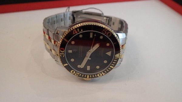 梭Seastar 1000計時碼表,不鏽鋼表殼,採用石英機芯,約16,700元。記者曾智緯/攝影 今年天梭表選擇在吉隆坡曝光年度新品,其中就包括了有著這樣好成績當基礎的Seastar 1000,將分別推出了價格更低的石英機芯計時碼表,以及全新配色的自動上鍊款,引起市場矚目。因為Seastar 1000系列讓台灣市場創下冬天也能賣潛水表的案例,讓天梭另外以同類似的概念打造了計時碼表款,表徑更加大到45.5毫米,並備有橘色、白色和金色等數字旋轉表圈的款式,以及黑、漸層藍、藍色的表盤設計。呈現了年輕又具動感的元素,頗值得讓人期待,戴上手更有霸氣感,符合男性消費者追求的「硬漢」風格。 另外,買都買不到的Seastar 1000自動腕表,今年亦準備了新配色,有略為成熟風格的鍍18K黃金與不鏽鋼組合的「半金」配置,更有今年忽然刮起的黑色流行風潮,利用黑色PVD塗層的設計,看起來十分的帥氣有型。連在現場的經銷商,都相當看好新配色,有望又帶起另一波的搶購潮,因此想下手的人,動作就要快了。