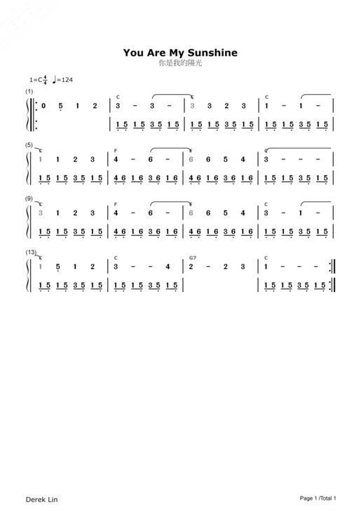 You Are My Sunshine 簡譜(點樂譜開演奏連結)
