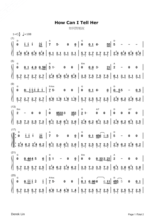 How Can I Tell Her簡譜(點樂譜開演奏連結)